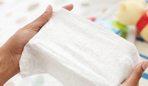 - Pronto, agora para utilizar você vai puxando a quantidade de lencinhos necessários e fechando em seguida a tampa para não ressecar.