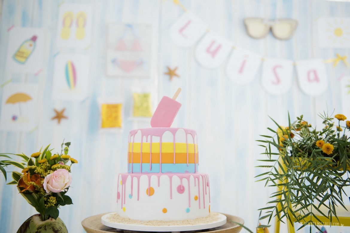 Outras tendências aparecem por aqui: o painel formado por quadrinhos, bandeirolas e esse bolo maravilhoso com um picolé derretendo. É para se apaixonar, né?